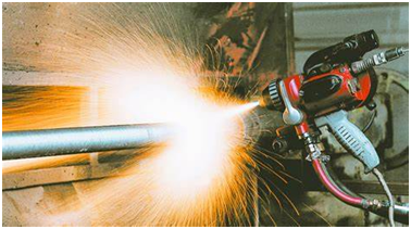 熱噴涂熔融金屬鉻粉,將高速粒子流噴在基體表面,以產(chǎn)生對(duì)覆層材料的保護(hù)作用。