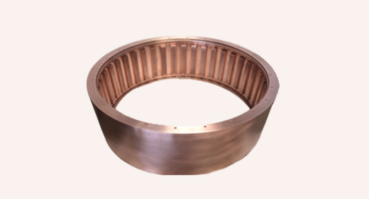 甩帶輪亦稱為速凝銅套、銅輥,用于甩帶機或甩帶爐上,是制備非晶納米晶軟磁材料和永磁釹鐵硼甩片的核心部件,是快速凝固甩帶法工藝的核心部件,在1400-1700℃的工作環(huán)境下以高效的熱傳導制備出高質(zhì)量的非晶噴帶和釹鐵硼材料,鉻鋯銅是目前最理想的材料之一。
